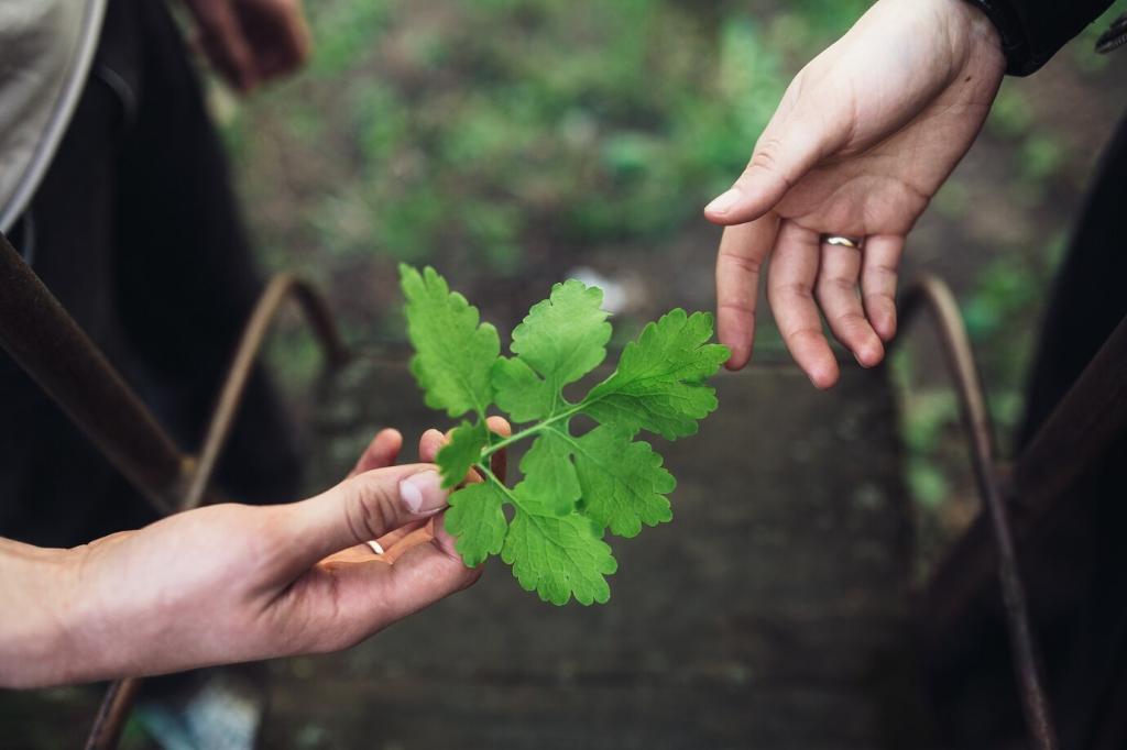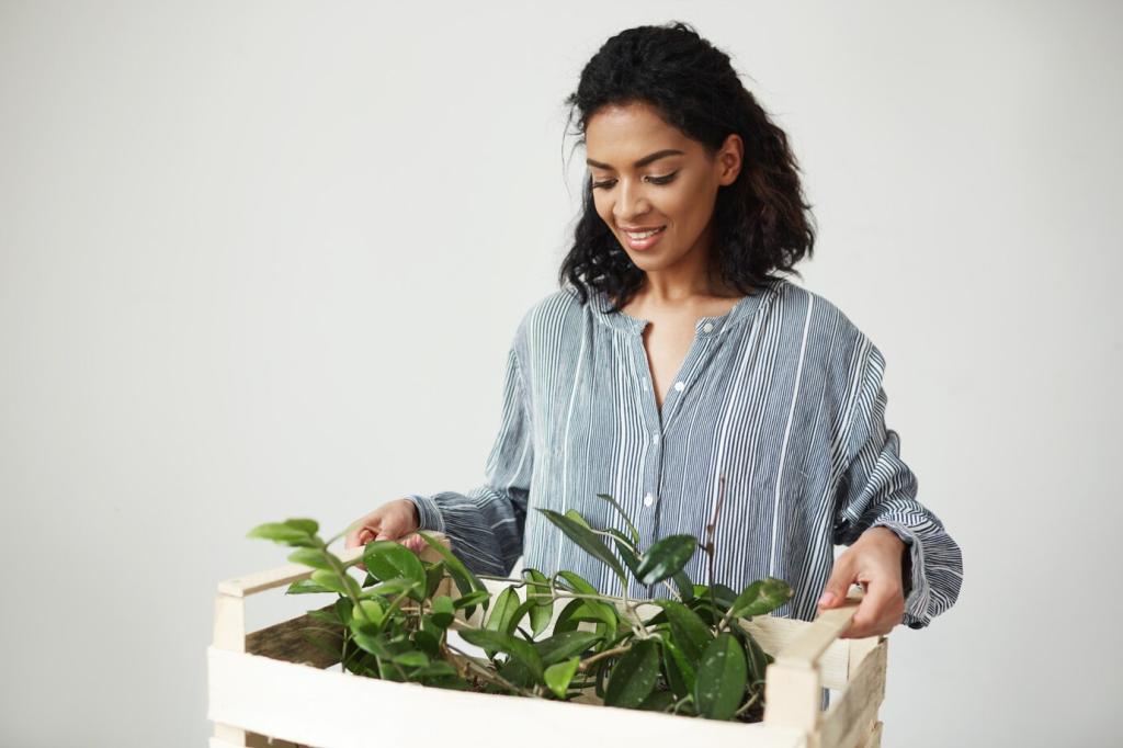Jedes Material braucht eine eigene Strategie: Versiegeltes Holz verträgt leicht angefeuchtete, pH-neutrale Reinigung; unbehandeltes Holz mag besonders wenig Wasser. Anilinleder verlangt sanfte Seife und Fingerspitzengefühl. Polster freuen sich über punktuelle Pflege, statt Vollwasch-Aktionen. Schreibe uns, welche Oberflächen bei dir zuhause die größten Fragen aufwerfen.